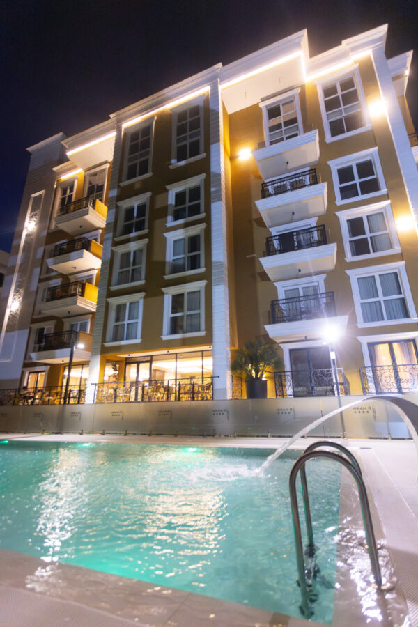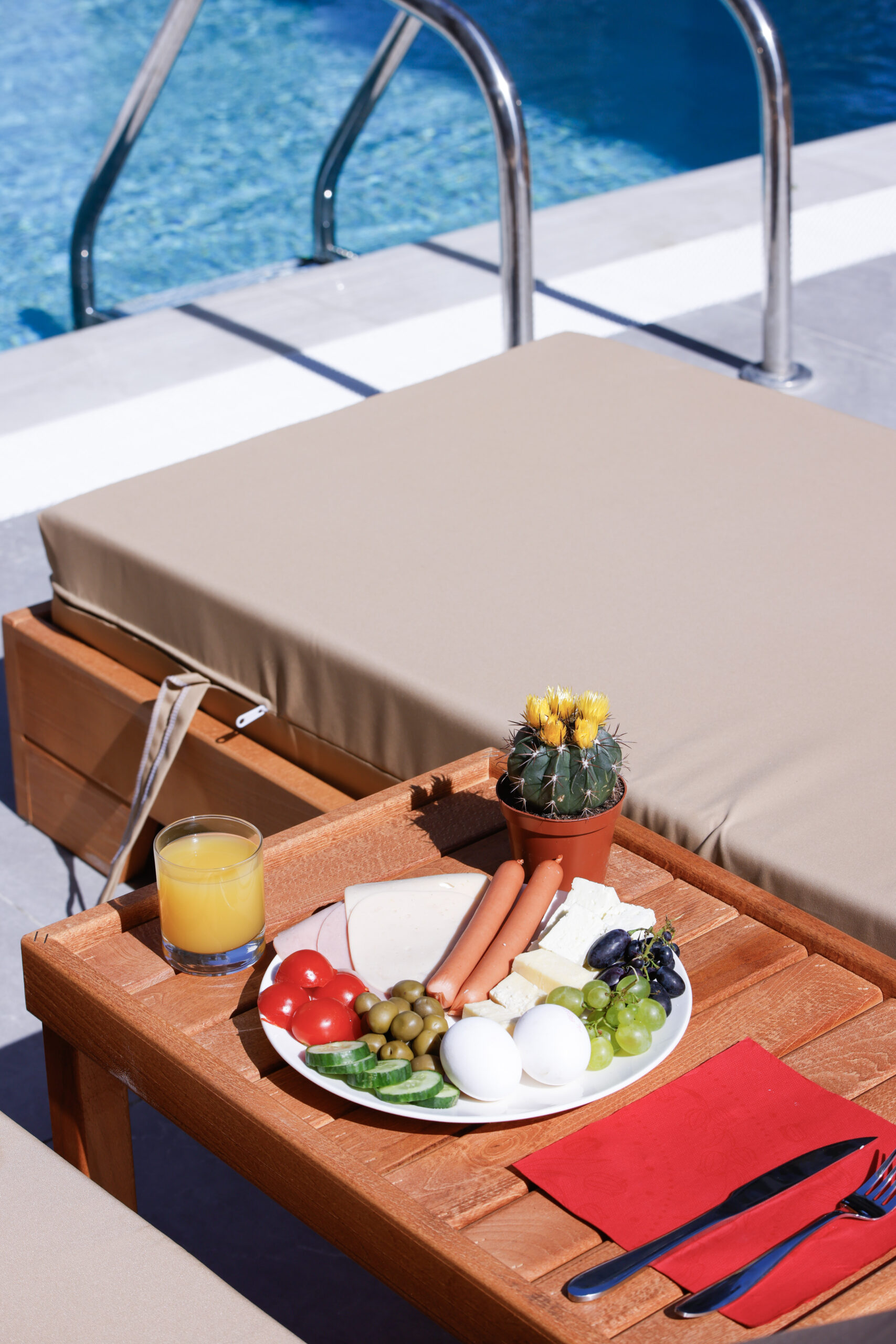 Our modern amenities include a refreshing outdoor swimming pool, complimentary breakfast buffet, free WiFi throughout the property, private parking, and daily poolside service with fresh water and seasonal fruits.