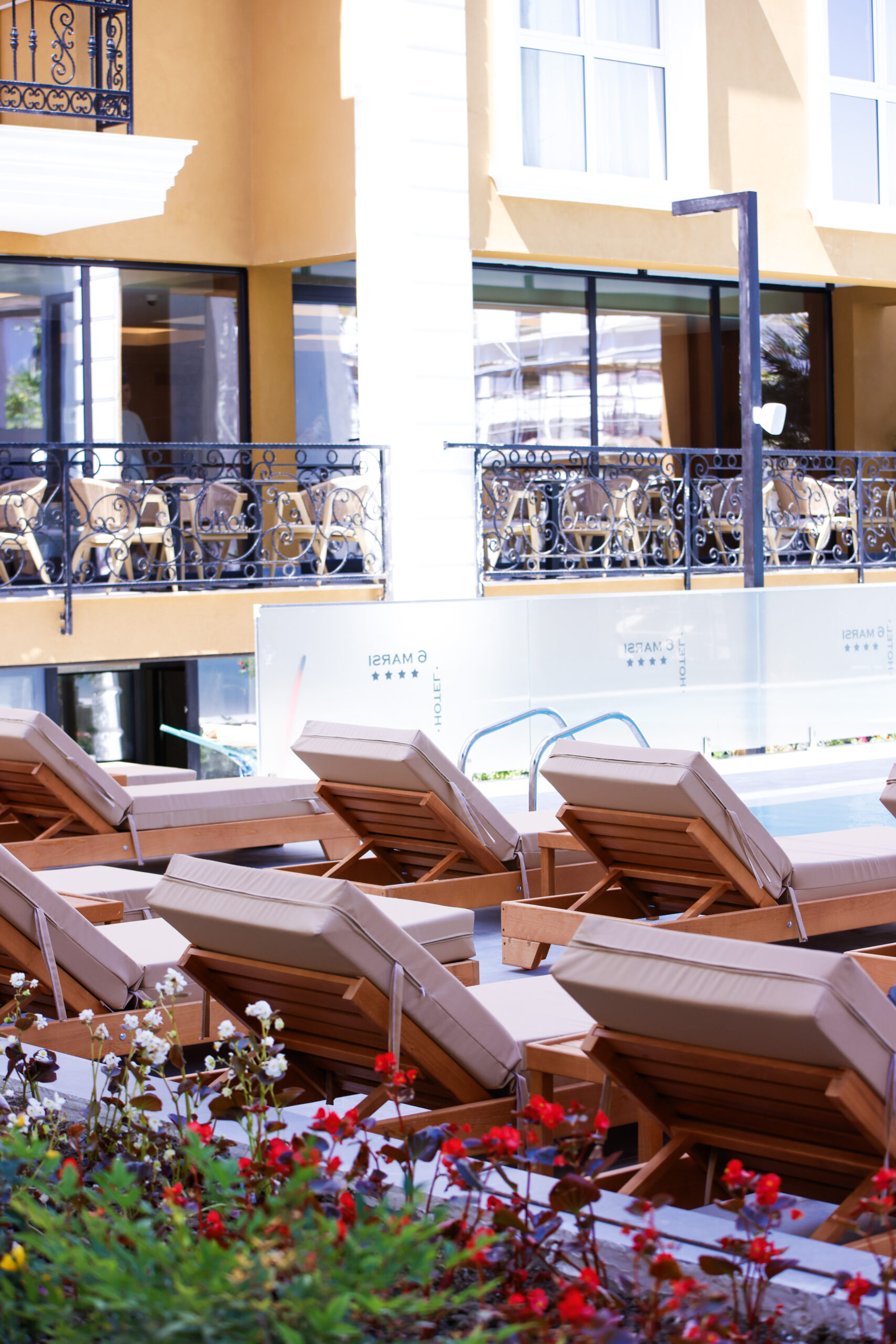 With complimentary loungers