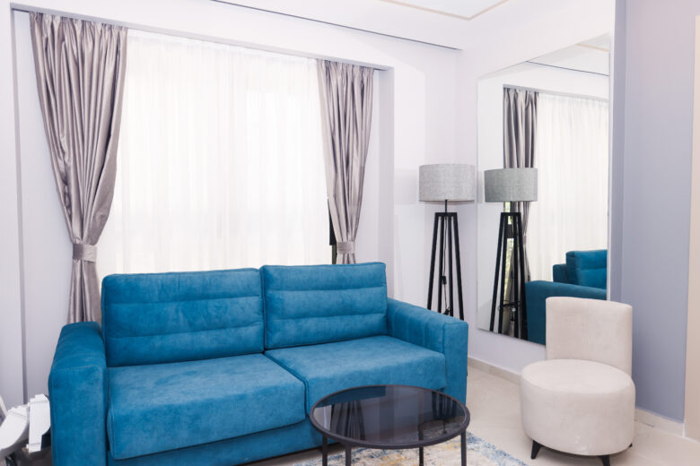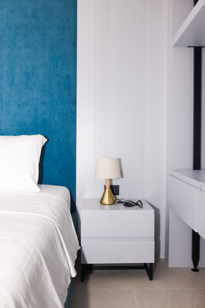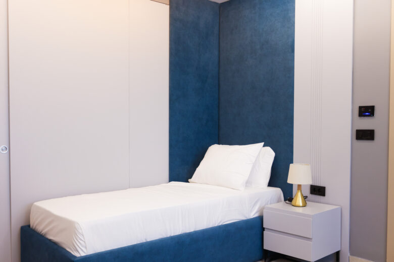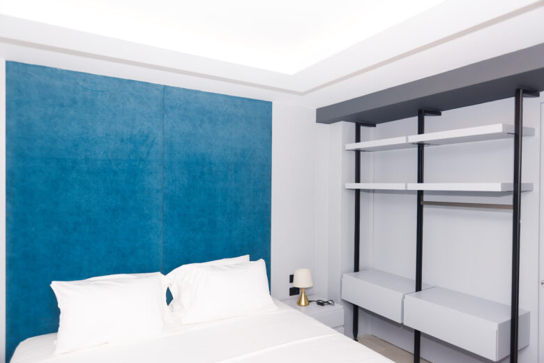 When you need space for two people, this room works really well. The main sleeping area has a comfortable queen bed, and there’s a sofa bed that’s actually decent quality.